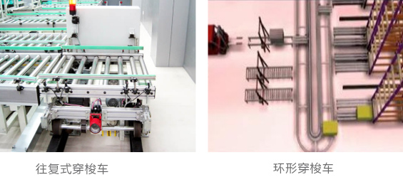 穿梭车用来衔接外部输送系统和内部输送机接口。当堆垛机数量较多时,可采用穿梭车来连接内外的货物传输,可节省大量的输送机,简化输送系统流程。