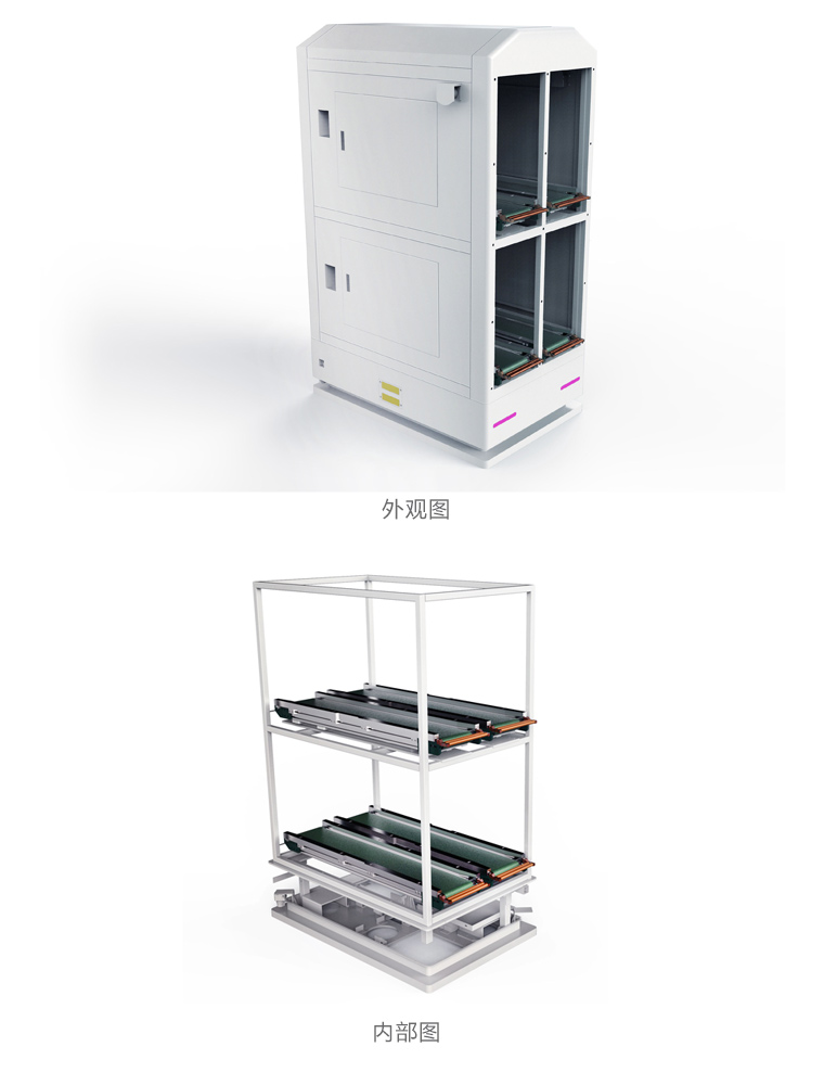 1、专用AGV用来搬运物料,背负皮带线输送到指定的上板机或下板机上面,实现空满交换料框,该AGV具有前进、后退、左右转功能,并且有横向移动功能,与设备对接时采用二次定位,保证5mm内的定位精度,实现了与设备的完美对接。