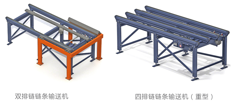 2、四排链链条输送机(重型):运行平稳,适用重型托盘