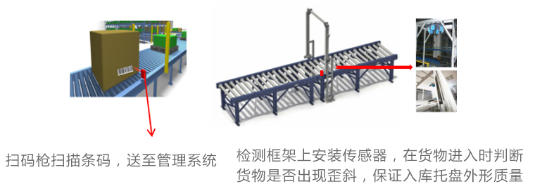 2、低位时,链条机上托盘可运行至顶升机上方,然后顶升机起升,通过顶部辊道或者链条将托盘送往其他方向的接口。